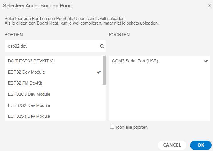 Dan is de IDE ingesteld voor zowel de ESP8266 als de ESP32.